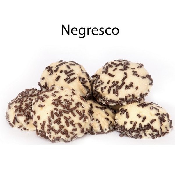 Biscoito amanteigado sabor artificial de nata com cobertura sabor chocolate branco e granulado crocante