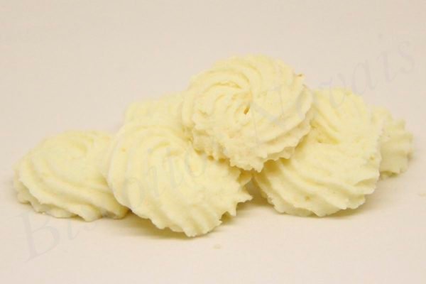 Margarina, amido, farinha de trigo enriquecida com ferro e ácido fólico, açúcar e aroma artificial de coco.