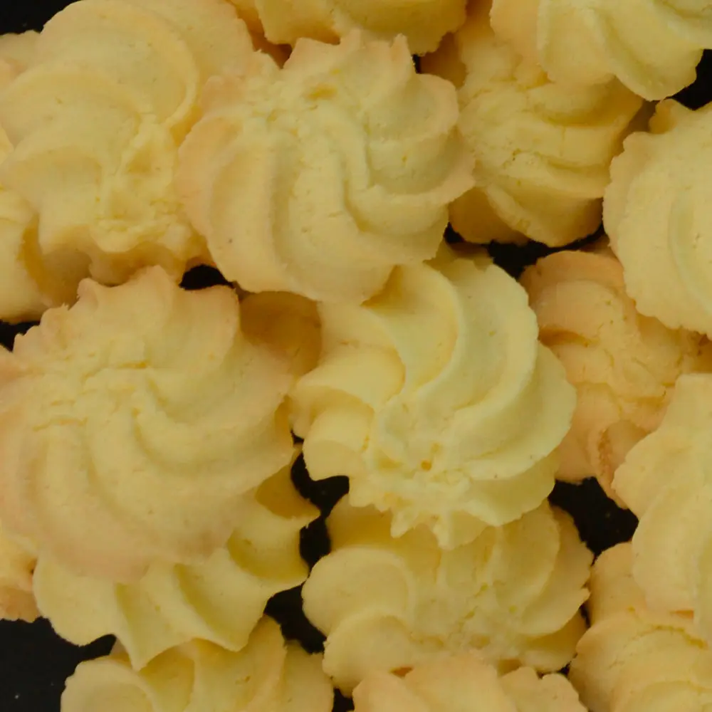 Margarina, amido, farinha de trigo enriquecida com ferro e ácido fólico, açúcar, aroma artificial de leite condensado e corante artificial: INS 110, TARTRAZINA INS 102, INS 150d.